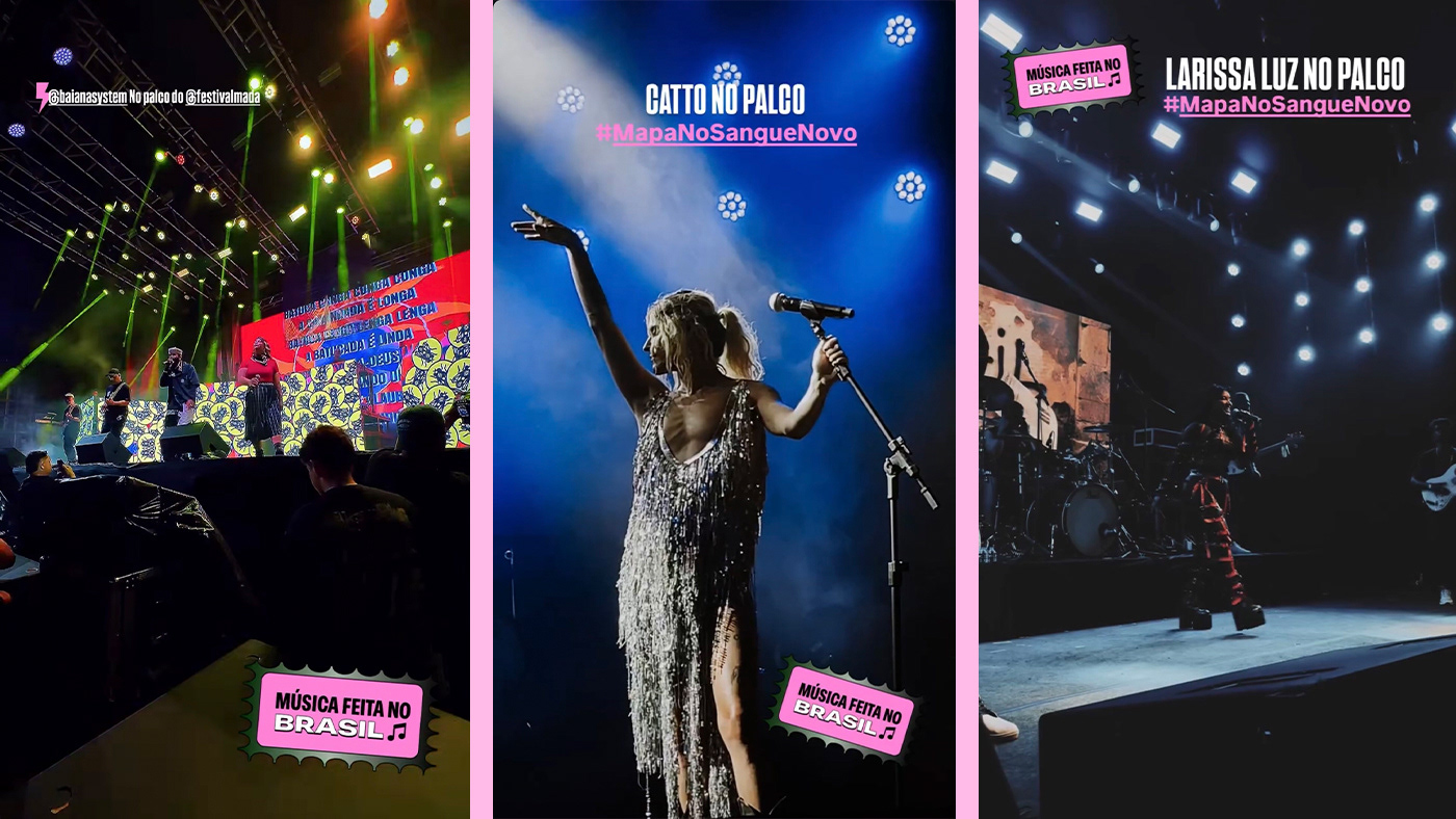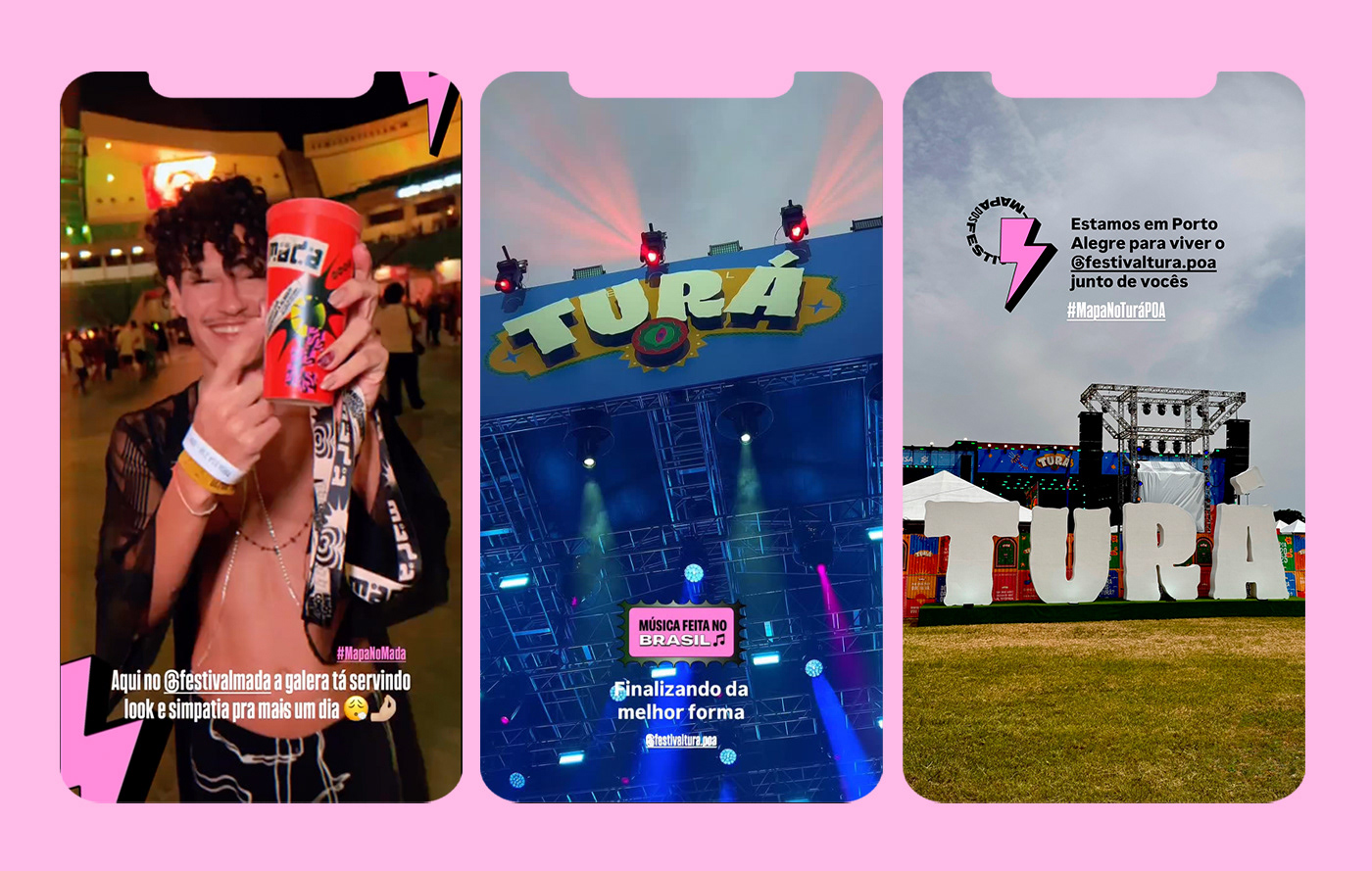 Stickers created for Mapa dos Festivais. Mapa dos Festivais is a content and data platform focused on music festivals in Brazil. I created five stickers for use in the festival coverage that Mapa posts on their Instagram Stories. The idea was to have stickers that drive engagement and capture the energy of a festival, while also highlighting that many of them are built with a 100% Brazilian lineup.